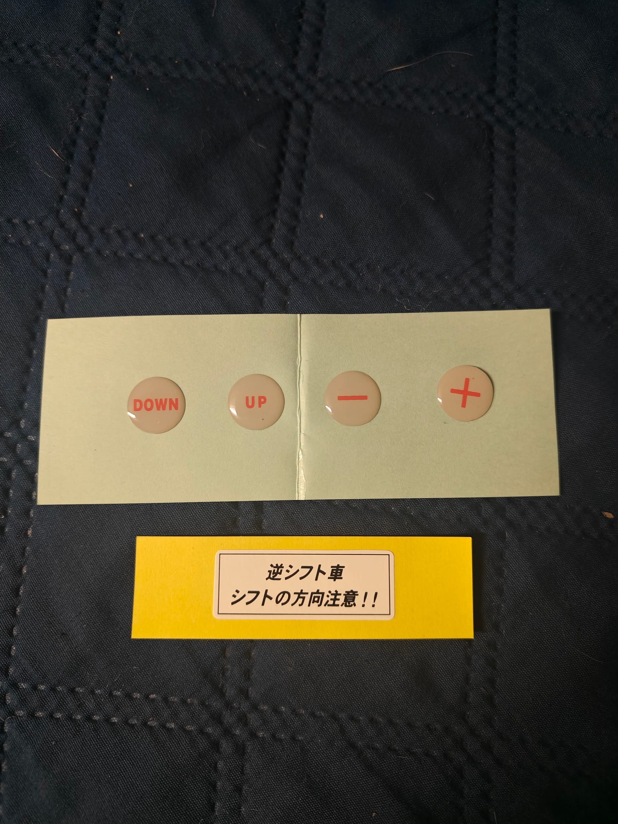 - Put those stickers on over the + and - signs on the shifter, as well as the bonus warning sticker if you desire.